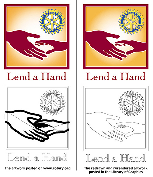 I occasionally receive e-mails asking what the difference is between the "official" artwork posted on www.rotary.org and the artwork available in this Library.